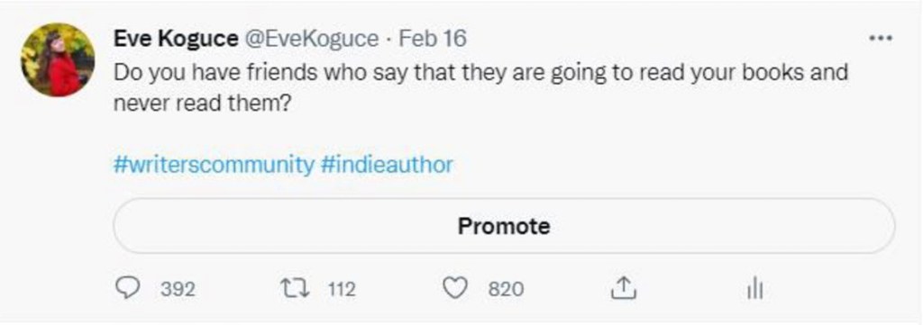To be honest, dear Diary – and with you, I’m always sincere – I’d thought that it’s different for others. When I asked the question about friends not reading fellow authors’ books, I didn’t expect to find out that it’s such a common issue. But it turned out that only a few indie authors have friends who support them by reading their books. Of course, those are only the authors who answered my tweet, but since there were almost 400 answers, it’s something to be considered.